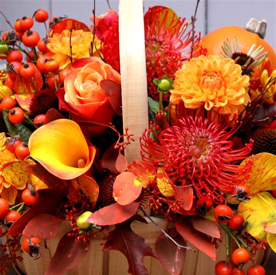 Rich, warm and full of autumn charm, 'Fallen Leaves' captures the beauty of the season in a luxurious basket design.