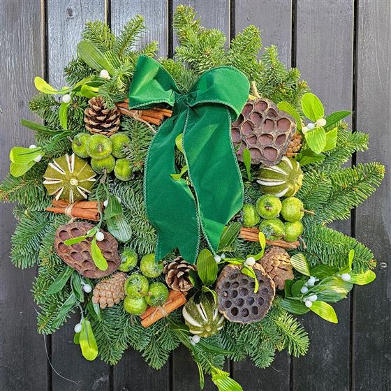 Fresh pine and moss in included in the kit. As it is a natural product, on the very rare occasion, it may contain the odd bug/beetle. All of this is natural and should be expected with a natural product. Do not leave the box indoors near a radiator of other heat source as it will dry out the fresh products contained within the kit. If the wreath is not going to be made for a few days once the kit is purchased, please leave it in a cool room or outhouse/shed to ensure longevity of the products.