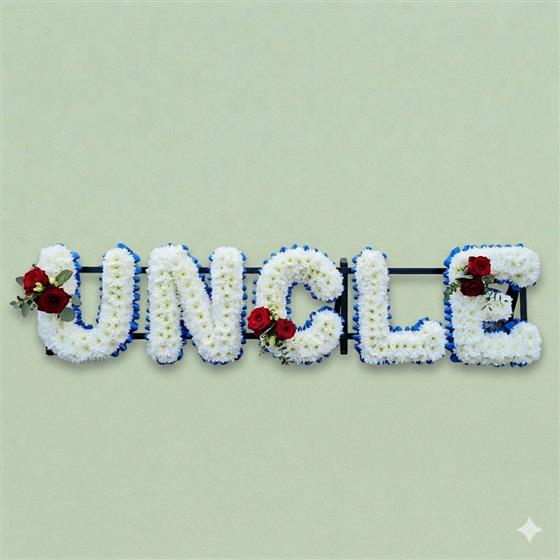 Created with care, sensitivity, and attention to detail, this tribute provides a calm and dignified farewell for a much-loved Uncle. If you would like alternative colours or a more bespoke design, please contact us and we will be happy to help.
